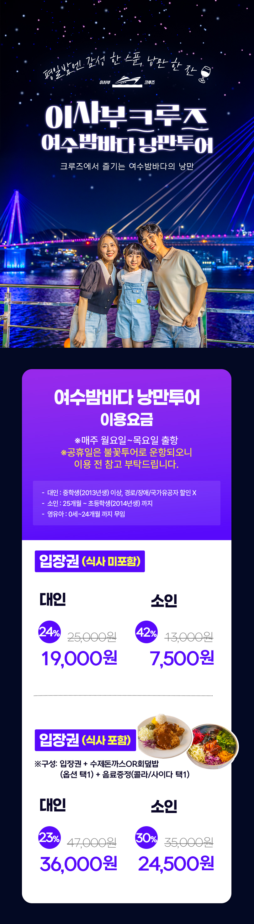 *여수밤바다낭만투어 상품은 월별 출항시간이 상이합니다.