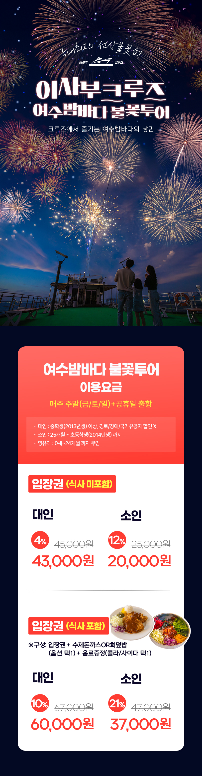 *불꽃야경크루즈는 월별 출항시간이 상이합니다.