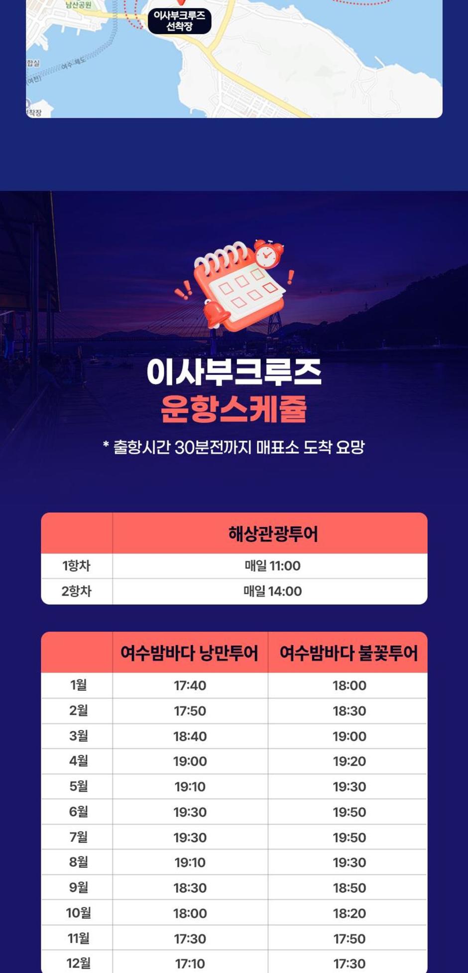*여수밤바다낭만투어 상품은 월별 출항시간이 상이합니다.