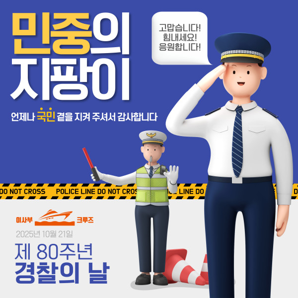 이사부크루즈 또한 그들의 헌신이 있었기에 우리의 오늘이 있음을 기억하며, 국가 안보와 국민의 안전을 위해 헌신하는 경찰관분들에게 깊은 감사의 마음을 전합니다.